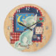 Cute, sweet white kitty cat sits in front of backdrop of Quilt Patchwork patches featuring moon and stars, a tulip, polka dots, and scotch plaid, against a backdrop of pale wood. Cute, unique artwork by Angela F. (AngelArtiste) with rustic charm. Girly and tasteful.