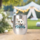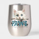 This insulated wine tumbler has a cute image combined with an inspiring message. An adorable blue eyed white kitten peeks over a ledge. The text below says "PAWS and enjoy the little things" with paw prints all over it. The image is printed twice, with your name, monogram, or other custom text at the middle.