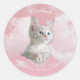 Cute White Kitten Pink Sky Clouds Name, Extra Text Classic Round Sticker