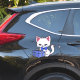 Cute drawing of white kitten holding a blue gift box. This shows one sticker per sheet 14x14" but there are 6 different sizes to choose from. Removable adhesive leaves no sticky residue. You have a choice between matte white or glossy transparent vinyl. Each sticker is printed with solvent inks that are fade-proof, water-proof, and scratch-resistant