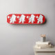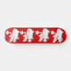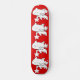 Cute white cartoon kitty cat skateboard with stars on red background.