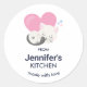 Kitchen sticker personalized with your name. An adorable graphic illustration. A white kitty cat with a cute paw print image on her fur. Sleeping peacefully. A big pink heart behind her and some little stars too.
