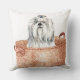 CUTE WHITE MALTESE DOG IN BROWN BASKET THROW PILLOW