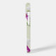 Cute and delicate white and magenta Orchids Flowers Monogram iPhone 14 Pro Case. Soft pastel green background.