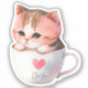 Add a touch of charm to your day with this adorable sticker featuring a cute white-pink cat cozily nestled in a whimsical tea cup. Perfect for cat lovers and tea enthusiasts alike, this delightful artwork combines sweetness and elegance, making it an ideal gift or a treat for yourself!