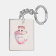 Cute White-Pink Cat in a Tea Cup (3) Keychain