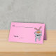 This folded standing place card for your parties, events, and weddings is vibrant pink with a cute white bunny rabbit giving a thumbs up sign and wearing a black bow tie. Customize the name and table number area and text on the back with the templates.