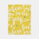 Cute white text design peace joy believe love on yellow background and white stars. Customizable fleece blanket template