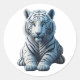 Imagine a magnificent white tiger, its fur glistening in the sunlight. Its body is covered in beautiful black stripes, which contrast against its pure white coat. The tiger sits gracefully, its eyes fixed on us with a calm and peaceful expression. Its presence exudes a sense of majesty and awe, capturing our attention and filling us with admiration for this incredible creature.