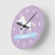 A wall clock that comes with a cute white unicorn with pastel red, blue and yellow mane which somehow resembles the rainbow. Easy to read white clock face. Perfect for decorating a girls bedroom with an enchanting, magical and fairy tale theme! Personalize with girl's name on the blue banner with tiny hearts!