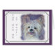 Cute white Yorkie Mix watercolor painted with soft multi-pastel colours. Perky Face and devilish smile with a mauve background makes this small dog breed loveable – originally painted by the designer www.fancifulwatercolors.ca – contact me if you want your dog painted