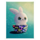 Embrace the awakening of nature with the Spring Guardian illustration. Featuring a fluffy white bunny with big, sparkling eyes peeking out from a colorful floral bowl, this artwork captures the magic of spring. a perfect addition to a nursery, child's bedroom, or as Easter decoration. A piece for animal lovers and fans of cute, kawaii art .The mood is cheerful and whimsical.