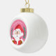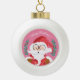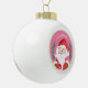 A white ball ornament with a cute winking Santa Claus on a pink background . Customize with your own text or leave it as it is .