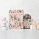 This cute wrapping paper features winter animals, wearing hats and scarves - you'll find polar bears, penguins, foxes, squirrels, and rabbits. Snowflakes, candy canes, Christmas trees, and gingerbread man cookies add a fun, whimsical touch. The background colour is a blush pink peach, but it can be customized to any colour you'd like. Perfect for gift giving this holiday season!