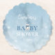This blue winter bear baby shower paper coaster features an adorable bear cub surrounded by a snowy winter background. These coasters are sure to add a touch of whimsy to any baby shower.