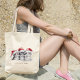 These bags were super cute (I purchased 3). The material is more of a canvas look & feel. The colour of the bag is slightly off white, but the letters look exactly as pictured. I took 3 photos in different lighting. Would recommend! I liked how there was an option to choose the font and colour of the name. The words are legible and the colours are exactly as pictured.