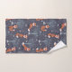 Charming red foxes in scarves wander a snowy blue forest of evergreens and mountains. Whimsical and wintery, perfect for cozy style.