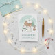 This charming holiday greeting card features a delightful illustration of a polar bear, a fox, and a bunny standing in the snow in front of a cozy winter cabin, inviting recipients to share in the festive spirit. The front of the card reads "FESTIVE ADVENTURES" and "WISHING YOU A SEASON FILLED WITH JOY, WONDER, AND COZY WINTER FUN!", capturing the essence of a whimsical, snow-filled season. Perfect for sending to friends and family, this card delivers a heartfelt message of warmth and cheer, making it an ideal choice for celebrating Christmas, the New Year, or the entire winter season.