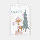 This cute custom Christmas ornament features a watercolor style winter woodland illustration. An image of a female fawn, or girl baby deer, is printed in the centre, next to a pine tree and falling pink snow. A sample name is printed at the top which you can personalize to include your own custom name or text.