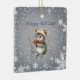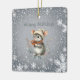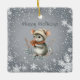A cute grey mouse dressed for winter in a stocking cap and scarf holds berries and wishes you “Happy Holidays.” It is surrounded by a white snowflake design. The greeting can easily be changed to anything you prefer.
