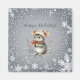 A cute grey mouse dressed for winter in a stocking cap and scarf holds berries and wishes you “Happy Holidays.” It is surrounded by a white snowflake design. The greeting can easily be changed to anything you prefer.
