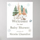 Rustic baby shower poster with cute bunny rabbits, trees and snowflakes. Perfect for a winter baby shower. The words can be changed to suit your own details or requirements