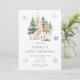 Rustic birthday party invitation with cute bunny rabbits, trees and snowflakes. Perfect for a winter birthday party. The words can be changed to suit your own details or requirements