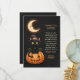 Invite your guests to a spooktacular celebration with this adorable Halloween design. Featuring a charming black cat in a witch's hat perched on a carved pumpkin under a crescent moon, this design is perfect for a fun, not-so-scary party. Easily personalize with all your event details.