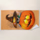 Cute Witch Cat and Pumpkin Halloween Friends Beach Towel
