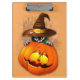Cute Witch Cat and Pumpkin Halloween Friends Clipboard