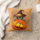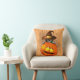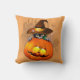 Cute Witch Cat and Pumpkin Halloween Friends Throw Pillow