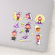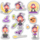 This super cute set of girl witch stickers are perfect for Halloween. You can choose between matte white or glossy transparent vinyl; please note that white ink is not printed on either substrate. The stickers removable, low-tack adhesive leaves no sticky residue, they are printed with solvent inks that are fade-proof, water-proof and scratch-resistant, making them compatible with and ideal for decorating water bottles, helmets, cars, skateboards, bikes, laptops, phones, tablets, binders, notebooks, journals, lockers, water bottles and more! They are available in 6 different sizes, there is a 0.125" border around each sticker to help it stand out against any background! © Julie McIver