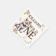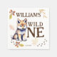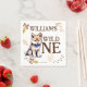 Cute fluffy wolf cub wild one woodlands birthday party personalized napkins, with brown fall leaves, nice for fall winter time party.