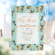 Celebrate the arrival of a little one with this adorable woodland-themed baby shower invitation. Featuring charming forest animals like foxes, deer, raccoons, and bunnies against a mint green background, this design captures the beauty of nature and is perfect for a boy's baby shower. The whimsical illustrations and soft colours make it ideal for an outdoor, rustic, or forest-themed celebration. This invitation will delight guests and set a cozy, nature-inspired tone for the special day.