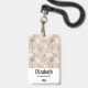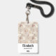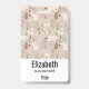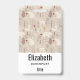 Personalized name badge with a cute Nordic style pattern. Winter pine trees, bears, reindeer and squirrels. Light brown colour.