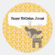 Send a birthday message or other custom greeting with these cute woodland animals stickers or seals. These stickers feature an brown buck deer against a bright yellow patterned background. Use the fill in the blank field to add your own message to the white bubble. These are perfect for sealing up envelopes or decorating goodie bags for a children's birthday party or other special event. These stickers coordinate with other items and party supplies in our Woodland Whimsy collection.