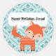 Send a birthday message or other custom greeting with these cute woodland animals stickers or seals. These stickers feature an adorable red fox against a blue patterned background. Use the fill in the blank field to add your own message to the white bubble. These are perfect for sealing up envelopes or decorating goodie bags for a children's birthday party or other special event. These stickers coordinate with other items and party supplies in our Woodland Whimsy collection.