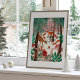 A cute nostalgic woodland green & pink traditional classic Christmas illustration with woodland forest animals in nature with snow. Original artwork by Caroline Bonne Müller
