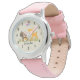 Personalized watch with a cute illustration featuring a baby deer and a little squirrel holding an acorn and a butterfly flying above their heads. These adorable woodland creatures on standing on some grass with some whimsical mushrooms by their feet.