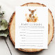 Cute baby shower guessing game card featuring a watercolor illustration of a baby deer/fawn surrounded by fall leaves in shades of orange, red, and yellow at the top of the card. Personalize the card with custom instructions, guessing criteria, and the mom-to-be's name and baby shower date. The design coordinates with our Cute Woodland Animals baby shower collection.