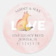 Modern personalized round stickers for your girl's birthday party or baby shower. This simple design feature my watercolor fox over blush pink background with the word LOVE. Personalize with you name and return address. To see the matching girly pink woodland fox Valentine's themed party decor visit www.zazzle.com/dotellabelle