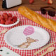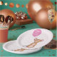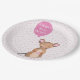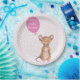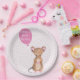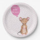 NewParkLane - Personalized Paper Plates, with a cute wood mouse in watercolor, with a pink balloon for your personalize text, against a fun abstract patterned background.