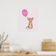 NewParkLane - Poster, with a cute woodland mouse in watercolor, with a pink balloon, for your name or other personal text, against a baby pink striped background.
