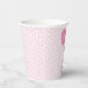 NewParkLane - Personalized Paper Cup for kids' birthday parties, with a cute woodland mouse in watercolor, with a pink balloon, for your name or other personal text, against a fun, baby pink, abstract patterned background.
