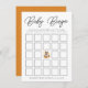 Cute baby shower bingo game card featuring "Baby Bingo" at the top in a modern black script with a watercolor illustration of a baby wolf pup surrounded by fall leaves in shades of orange, red, and yellow. as the centre bingo spot. Personalize with the mom to be's name and baby shower date along the bottom. The design coordinates with our Cute Woodland Animals baby shower collection.