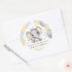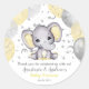 This adorable baby shower sticker features yellow and grey baby elephant with balloons, silver stars and moons. Easily customized for your event by clicking personalize. Great for gender neutral baby shower.