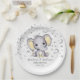 This adorable baby shower paper plate features yellow and grey baby elephant with silver stars and moons. Easily customized for your event by clicking personalize. Perfect for those special treats! Great for gender neutral baby shower.