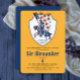 Prepare to host a royal celebration with a touch of middle age charm! This delightful birthday invitation features a bold armoured mounted knight framed by a majestic white shield with red floral ornaments, all set against vibrant yellow backdrop. The birthday child's name stands out in elegant blue typography with a simple white outline, matching the colours of the shield. The party details—time, date, and location—are displayed in a clean, simple font, ensuring clarity against a joyful yellow background. Flip the card, and you'll uncover a deep navy blue colour, continuing the royal theme. Perfect for a fun-filled day of knights, horses, and adventure, this invitation promises an unforgettable medieval birthday party! Ideal for kids’ birthdays with a playful medieval flair. Explore the full collection for more colour variations and designs that share this enchanting theme!