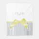 A girly grey and white stripes pattern fleece blanket embellished with a picture of a cute light yellow satin bow. Personalize by adding the name of your favourite girl. Flat printed image, NOT affixed with an actual ribbon.