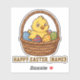 This vibrant sticker features a cute yellow chick nestled in a woven basket with colorful eggs. The artwork is designed in a premium glossy vinyl style with a clean, dark brown outline and smooth block shadows [cite: 2026-02-27]. It is perfect for decorating Easter baskets, gift tags, water bottles, or nursery items.